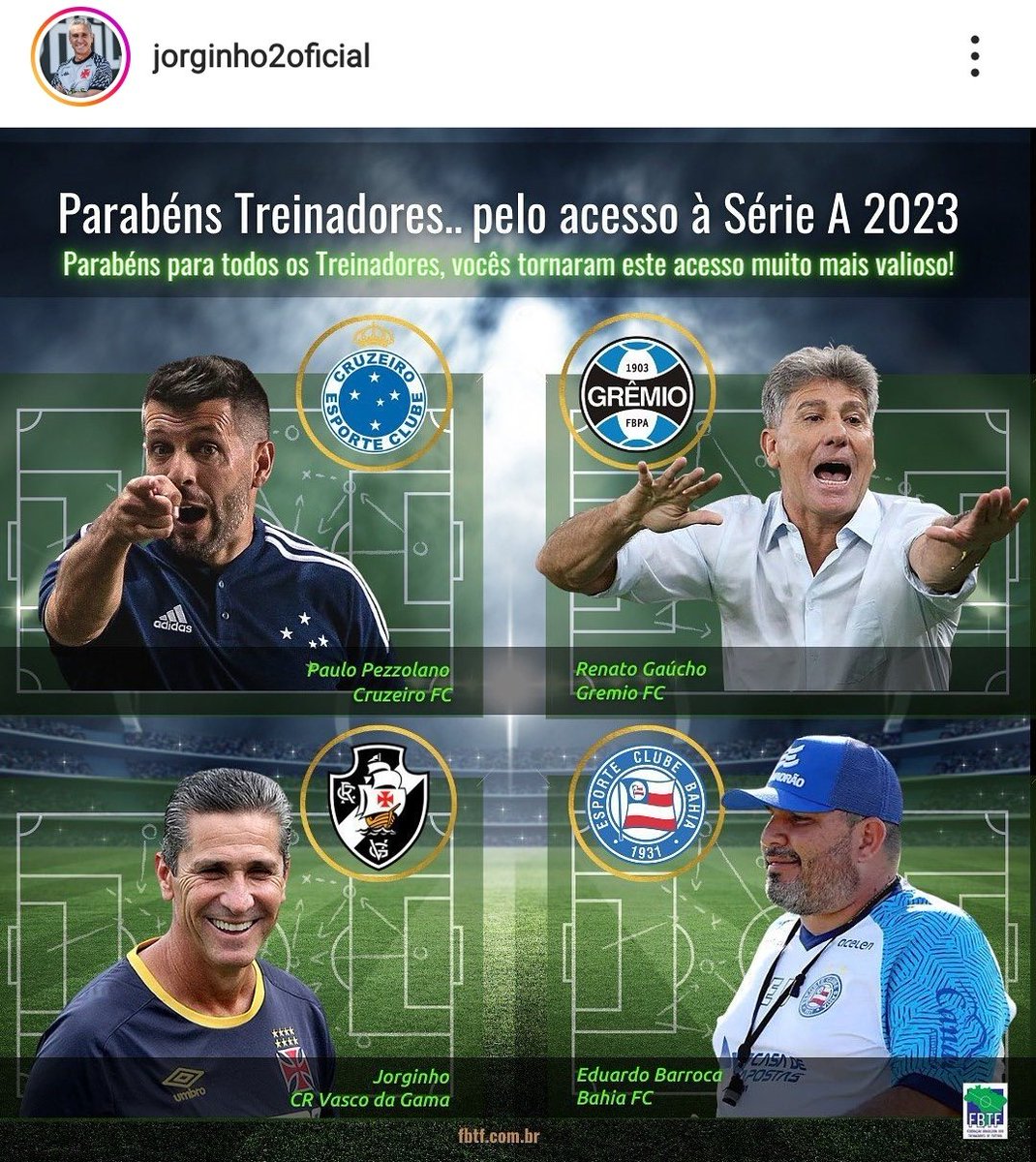 Jorginho cita os treinadores que, assim como ele, conquistaram o acesso à Série A; veja