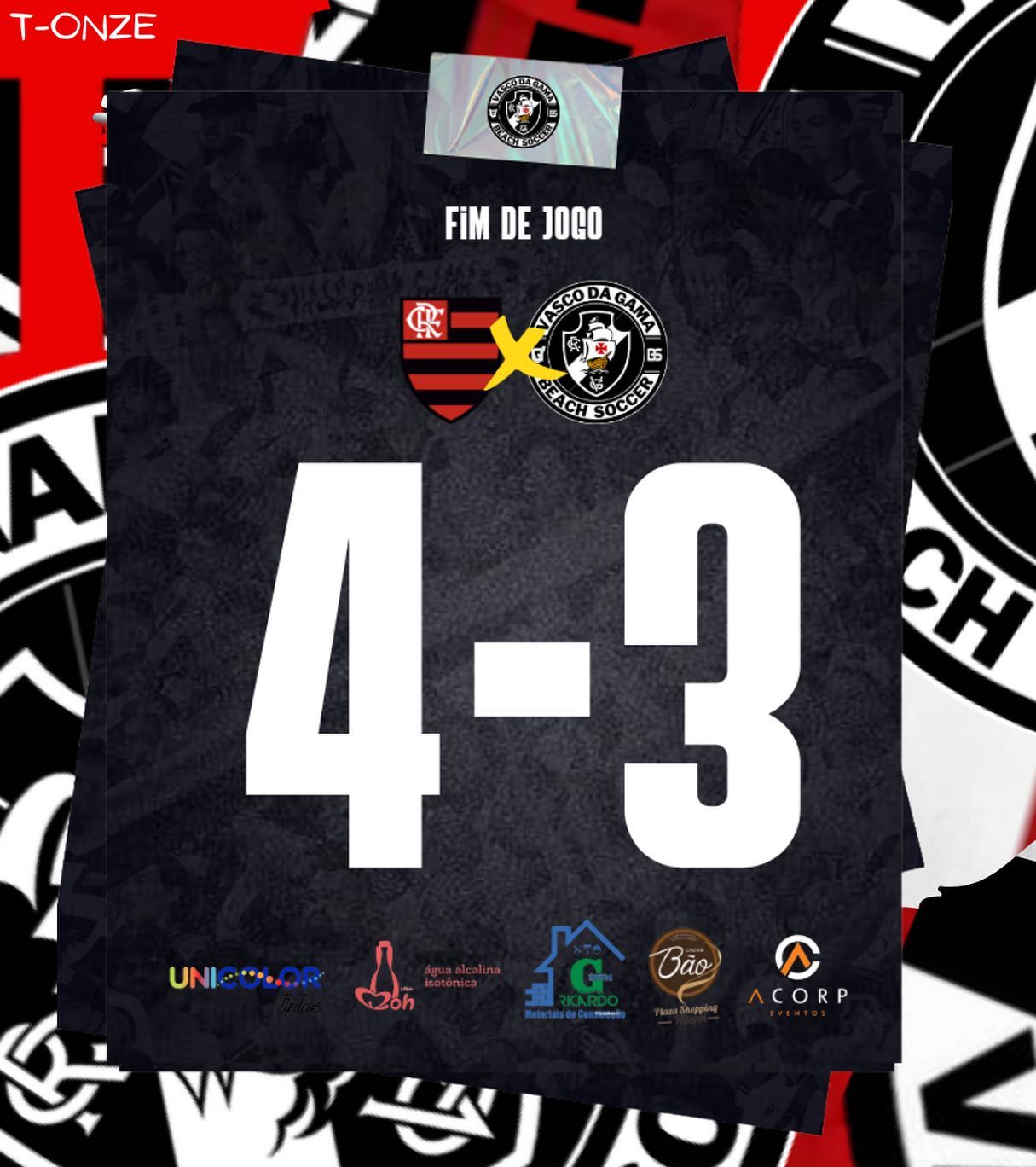 Na semifinal do Campeonato Carioca de Beach Soccer Sub-18, o Vasco foi derrotado pelo Flamengo por 4 a 3 na tarde desta 6ª-feira, na Praia de Botafogo, e se despediu da competição.