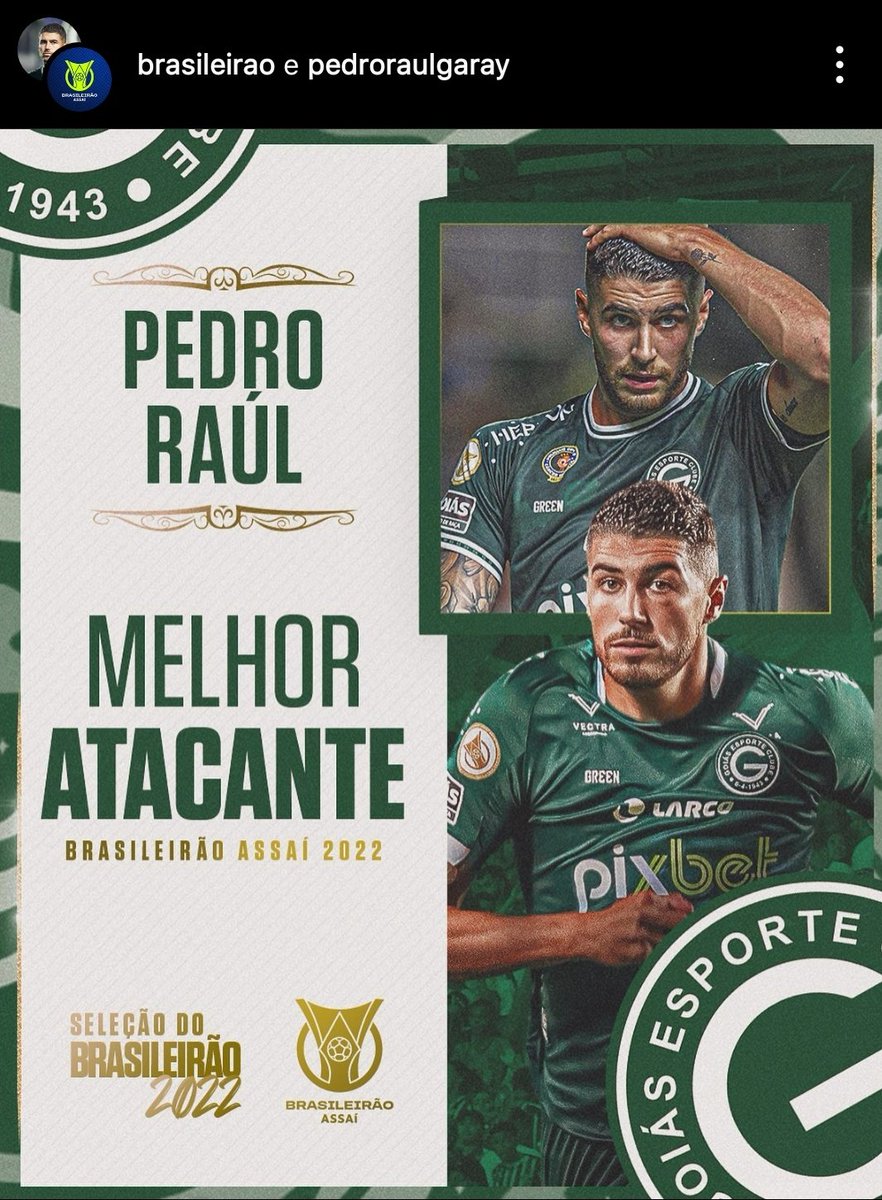 Pedro Raul, que está na mira do Vasco, foi eleito o melhor atacante do Brasileirão 2022 pelo Goiás, ao lado de Germán Cano.
