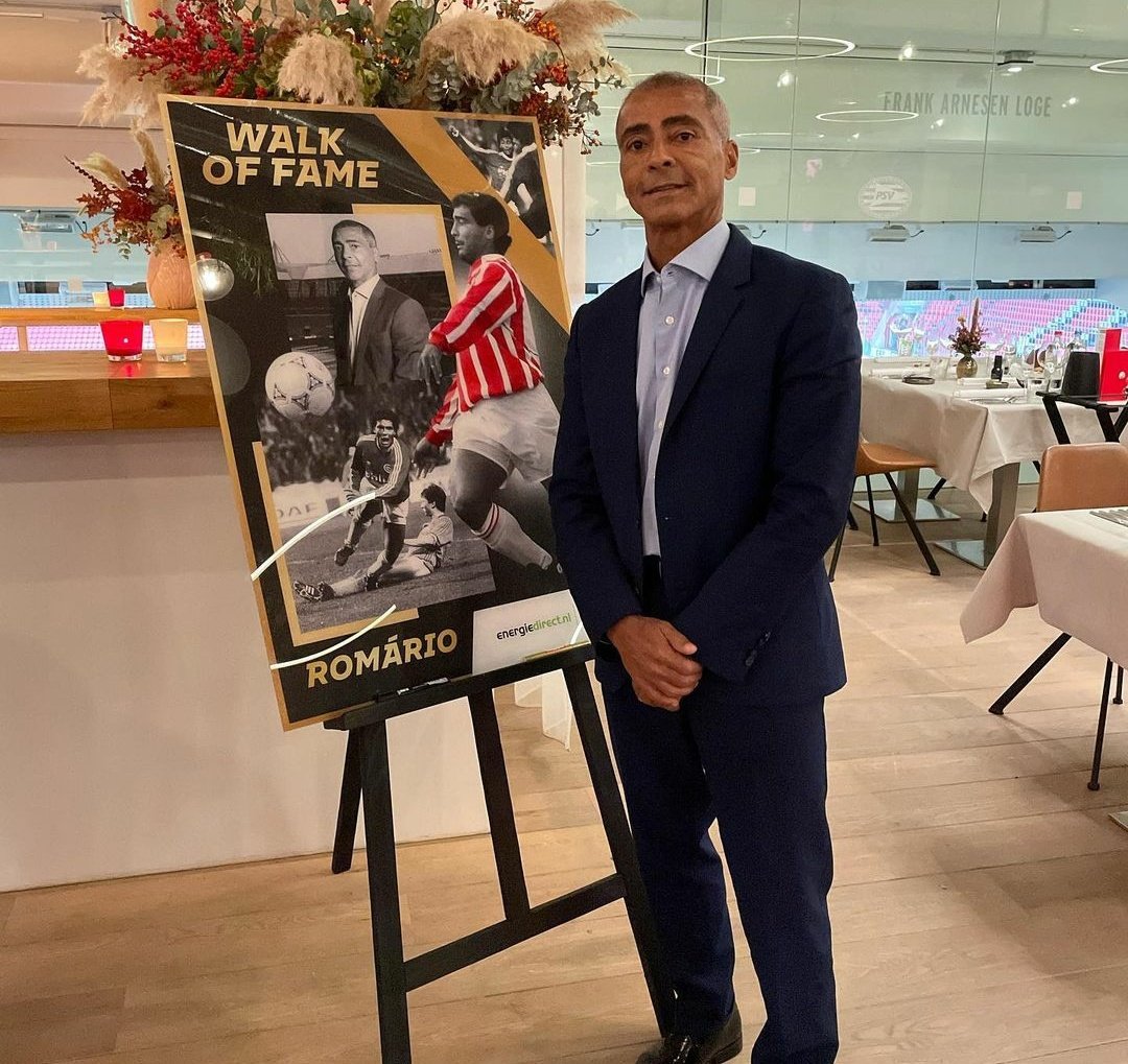 Romário coloca os pés na Calçada da Fama do PSV, clube pelo qual marcou 165 gols