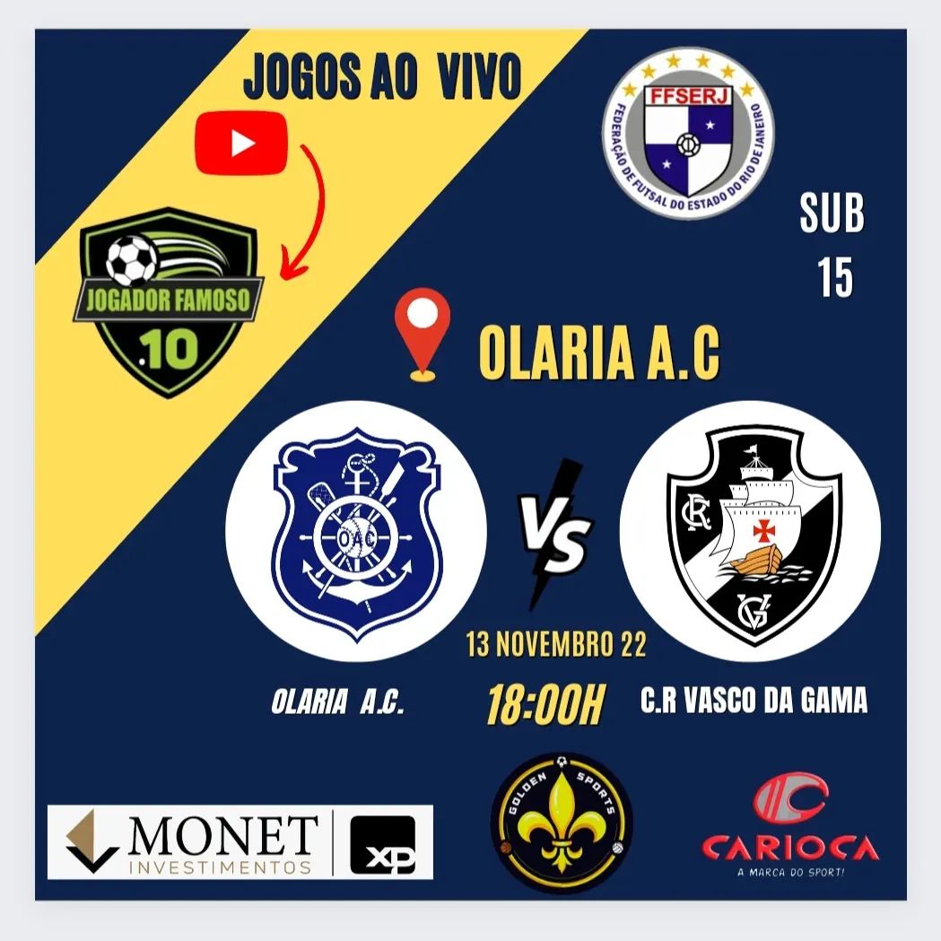 Futsal Base: Olaria x Vasco, neste domingo, às 18h, pelas quartas do Carioca Sub-15, terá Youtube