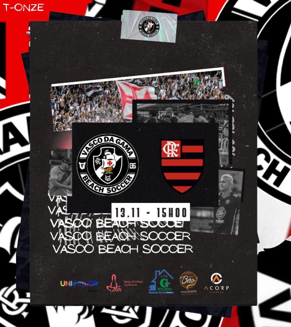 Vasco e Flamengo decidem o Campeonato Carioca de Beach Soccer a partir das 15h deste domingo na Praia de Botafogo. Nas semifinais, disputadas no sábado, o Vasco derrotou o Boavista por 12 a 1 e o Flamengo venceu o America por 11 a 4. O Vasco é o atual campeão e busca o bicampeonato. A decisão terá transmissão ao vivo pelo canal Web Esporte TV no Youtube.