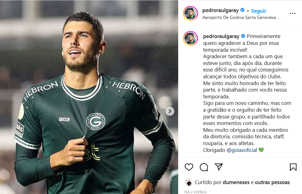 Aliás, o centroavante também confirmou que não vai continuar no Esmeraldino. Afinal, ele até já postou uma mensagem de despedida em sua conta oficial no Instagram.