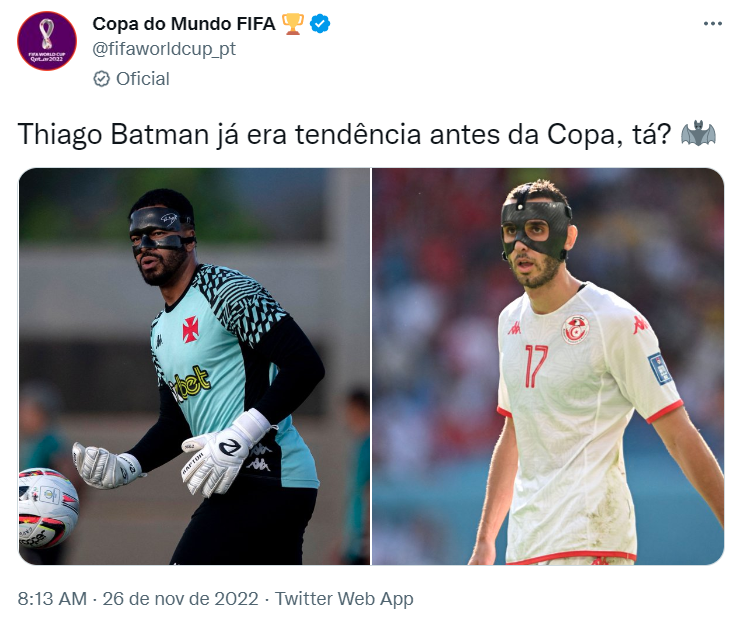 Perfil oficial da Copa do Mundo diz que Thiago 'Batman' já era tendência antes da competição