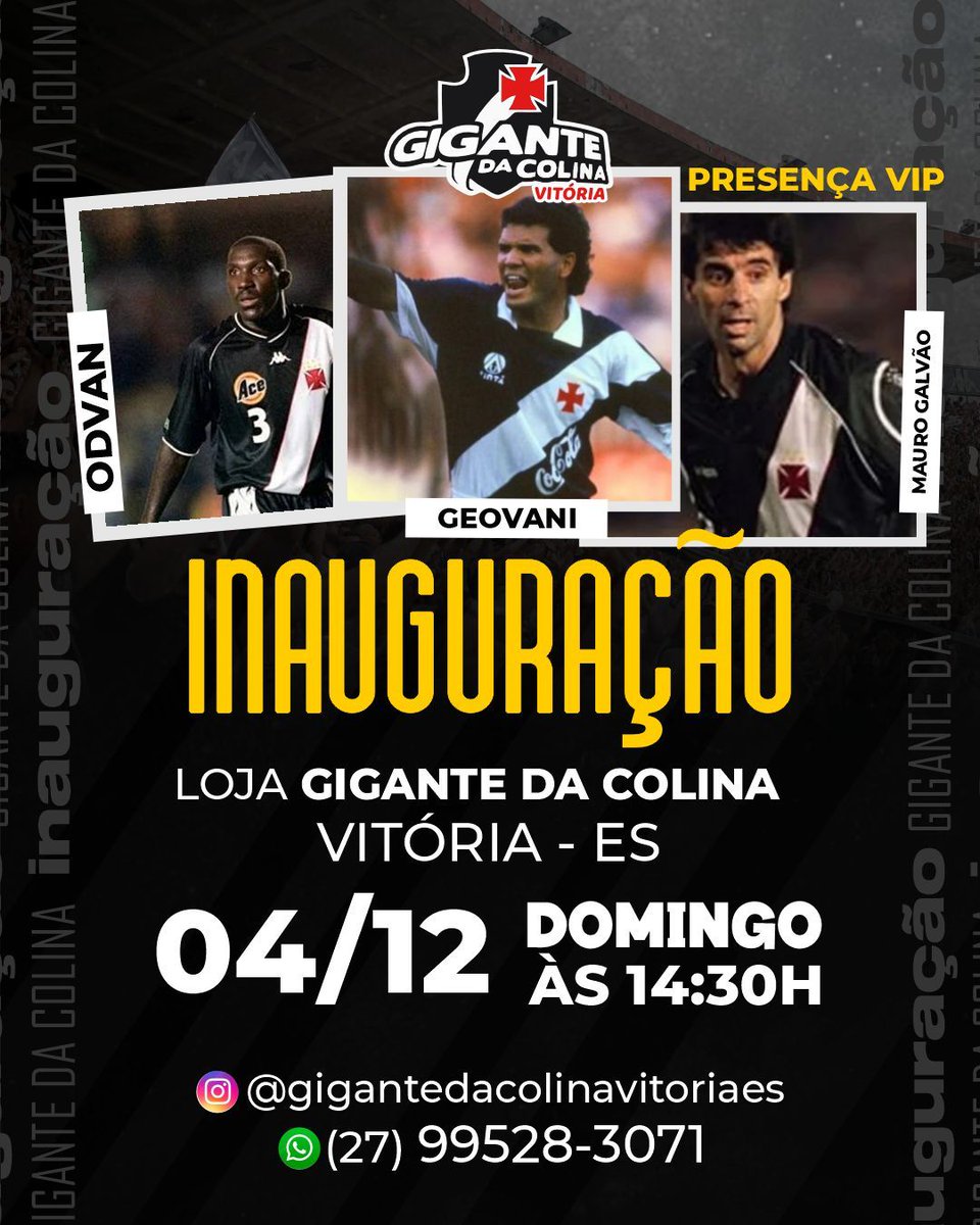 Vasco lembra que loja Gigante da Colina será inaugurada neste domingo às 14h30 no Shopping Vitória, no Espírito Santo