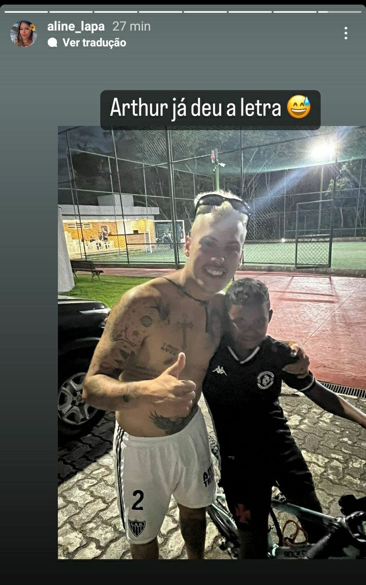 Aline, esposa do Anderson Conceição, postou essa foto do seu filho com o Guga e escreveu 'Arthur já deu a letra😅'