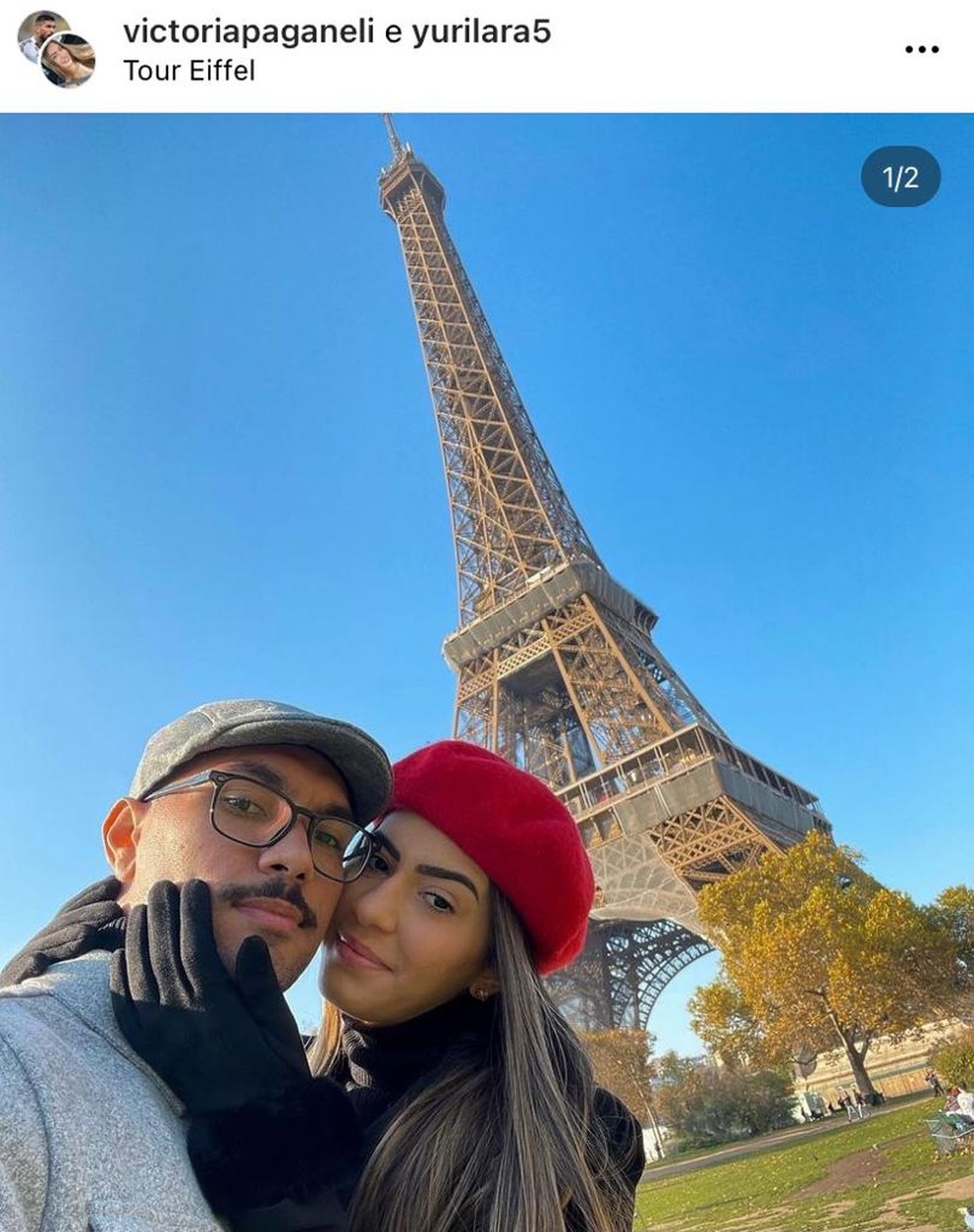 Yuri Lara: O jogador curtiu a Europa ao lado da namorada Victoria Paganeli. Os dois posaram juntos perto da Tour Eiffel, em Paris, na França.