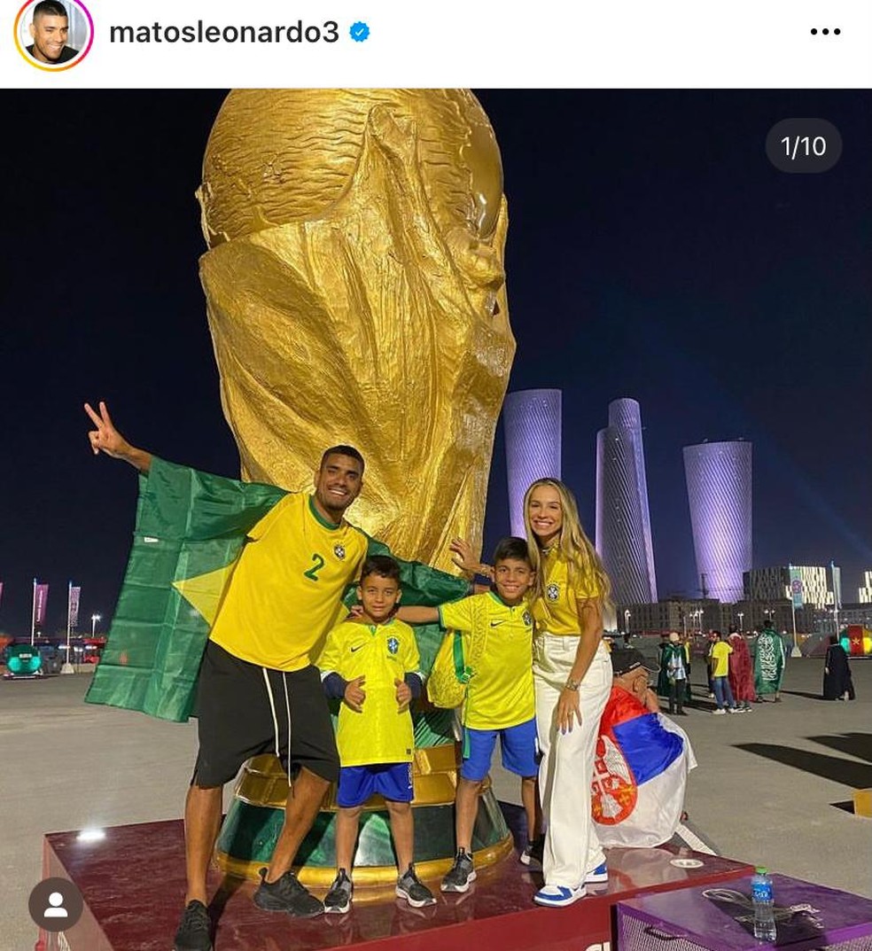 Léo Matos: O lateral-direito foi para o Catar assistir a Copa do Mundo ao lado da família, e aproveitou para publicar foto ao lado da esposa e dos dois filhos. Além disso, registrou um jantar com o companheiro de equipe Nenê, que também está no Catar.