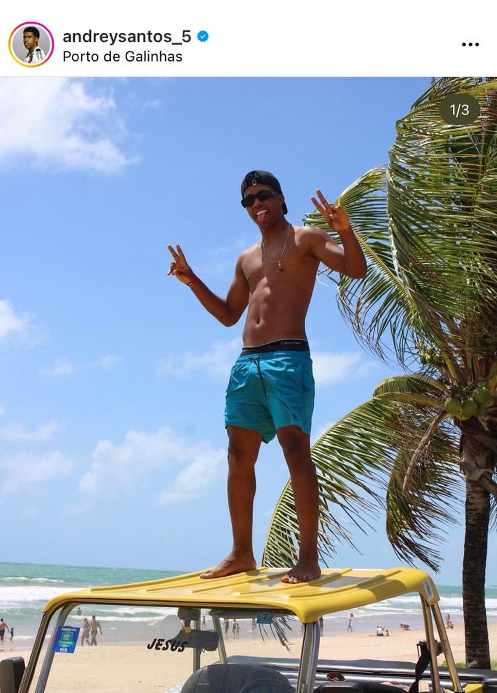 Andrey Santos: O meia escolheu Porto de Galinhas, em Pernambuco, para curtir as férias e publicou uma foto após o tradicional passeio de bugre pelas praias da região.