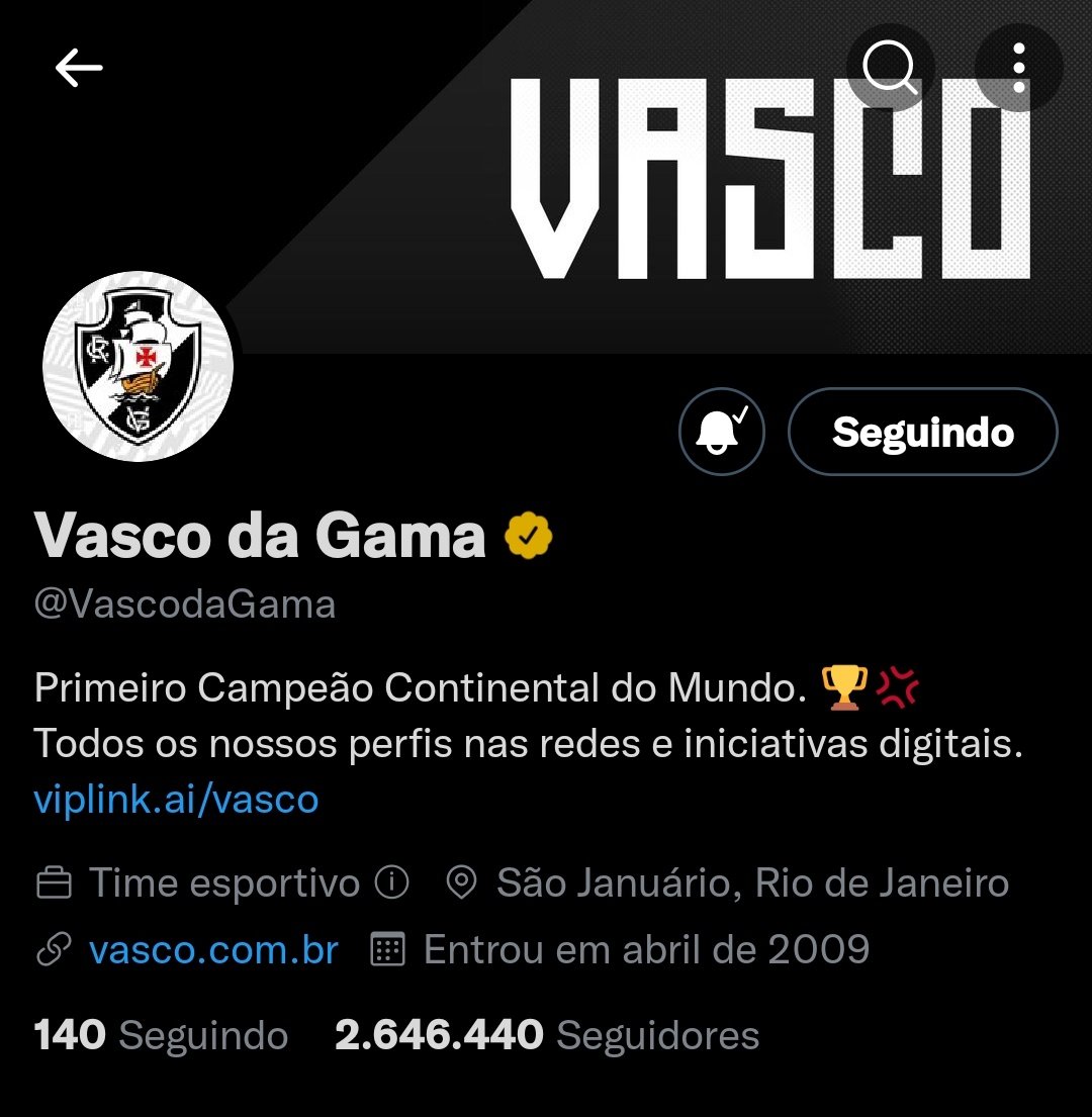 Selo de verificado no perfil do Vasco no Twitter passa a ter a cor amarela