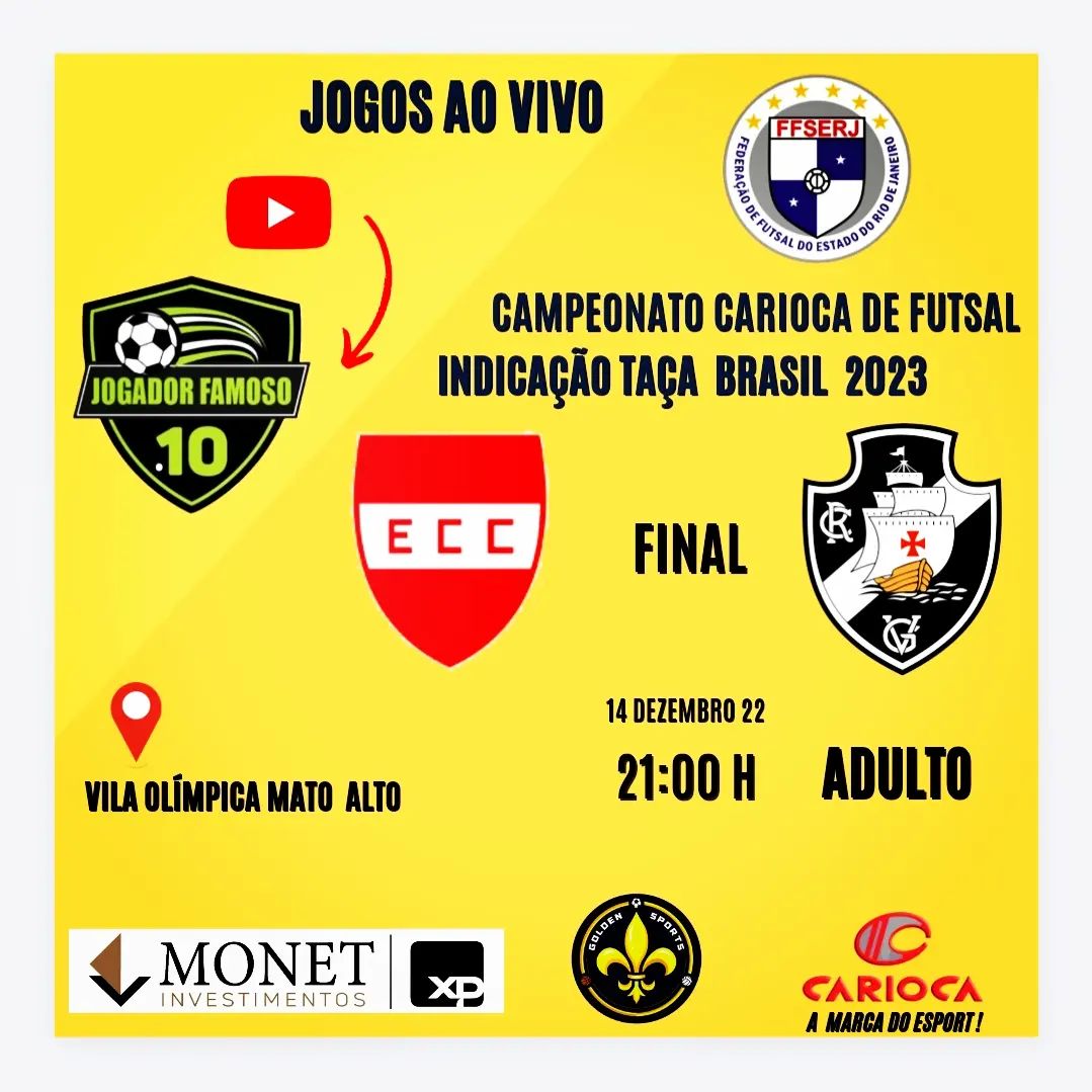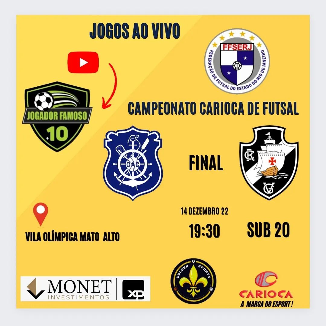Futsal: Final do Sub-20 entre Vasco e Olaria e Indicação da Taça Brasil entre Vasco e Corrêas, nesta 4ª, terá Youtube
