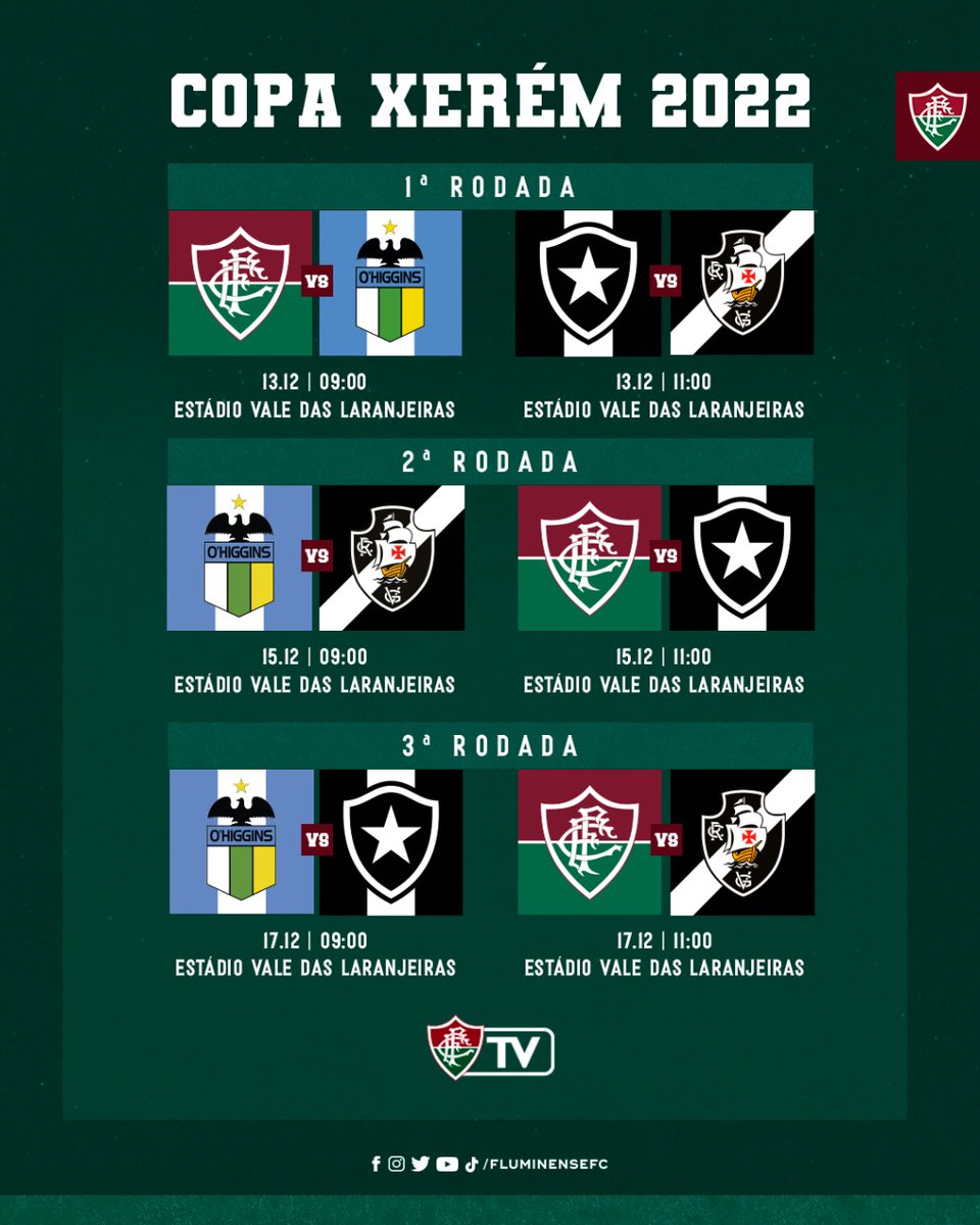 Tricolor, nesta terça-feira começa a Copa Xerém 2022! Fique ligado nas datas e horários dos jogos! #VemQueTem 🇭🇺