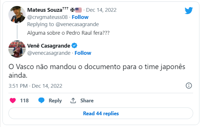 @crvgmateuss08 O Vasco não mandou o documento para o time japonês ainda.
