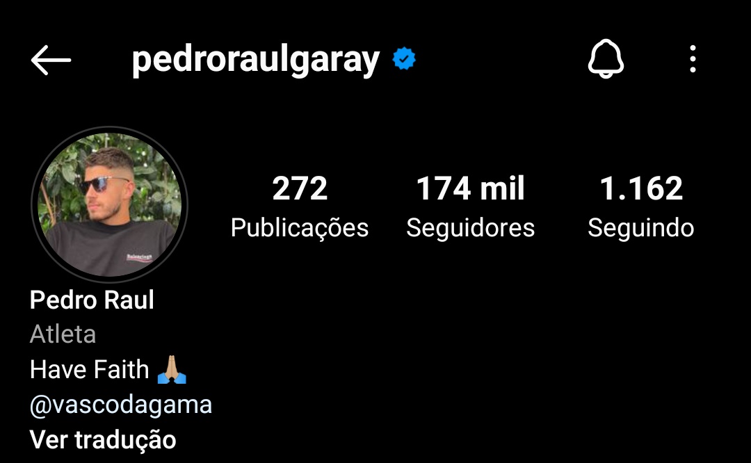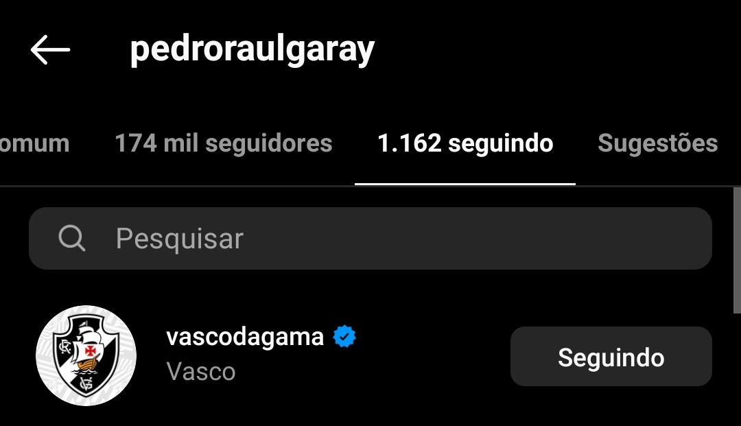 Pedro Raul atualiza seu perfil no Instagram e passa a seguir o Vasco; veja