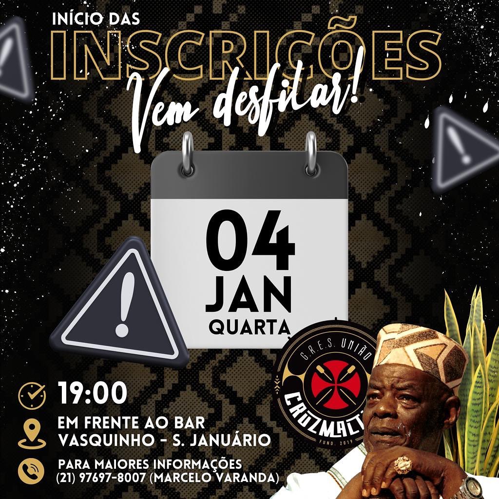 Inscrições para desfilar pela União Cruzmaltina em 2023 começam no dia 4 de janeiro; veja mais informações
