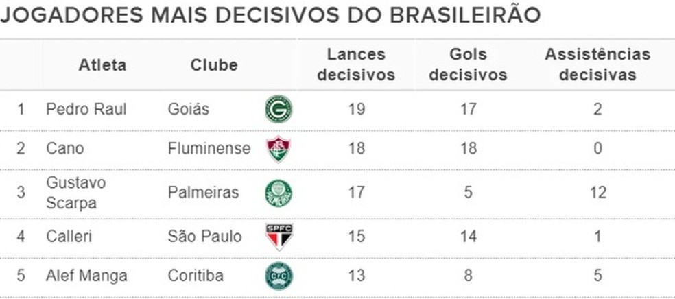 Foram oito gols marcados que empataram o placar e nove gols que colocaram o Goiás à frente no marcador, como trouxe o levantamento do Espião Estatístico ao fim do Brasileirão, que o elegeu o jogador mais decisivo do campeonato.