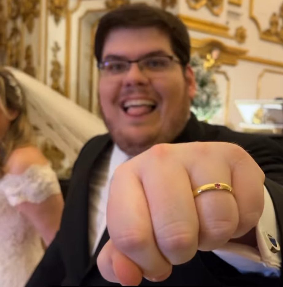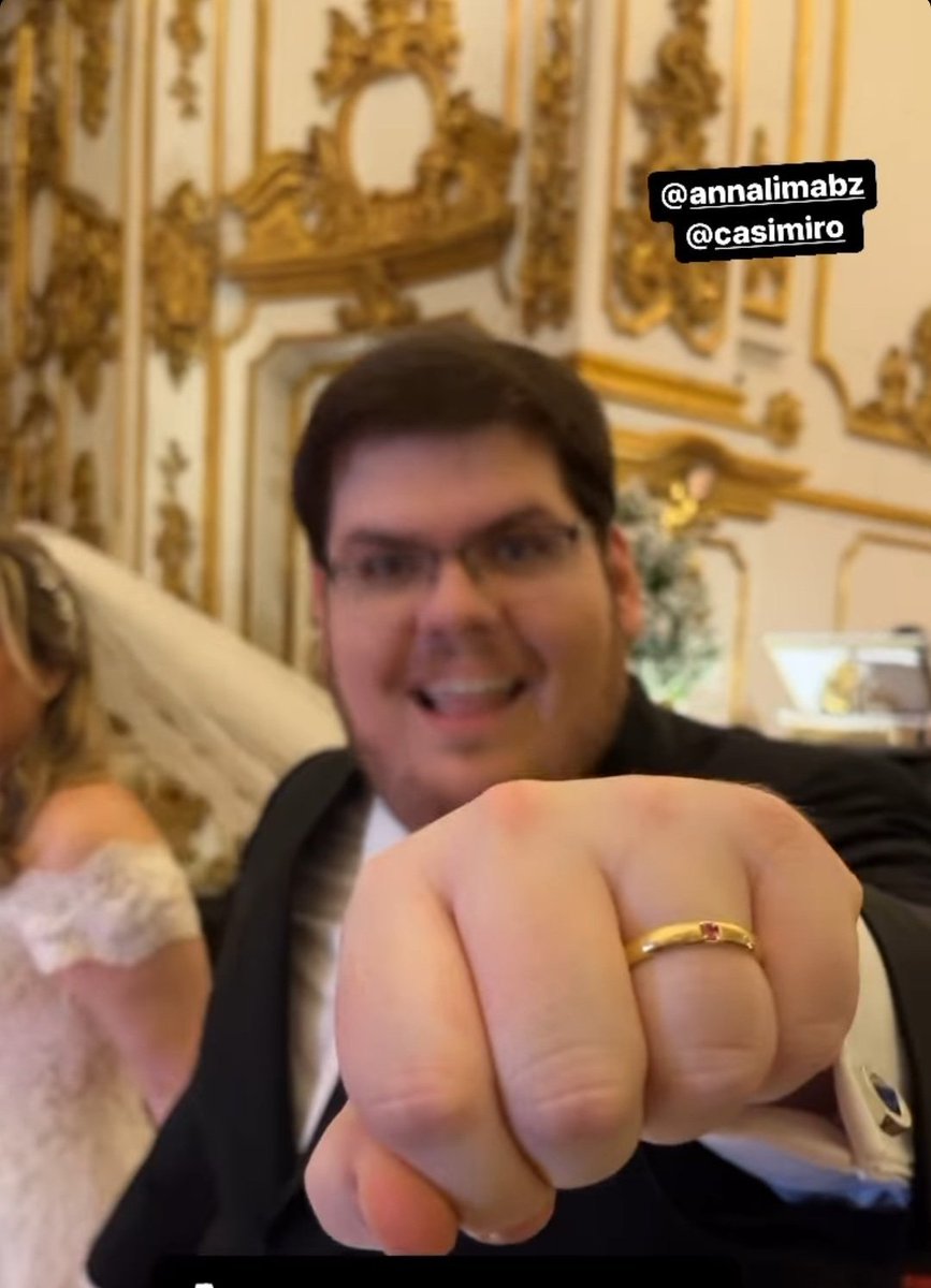 Casimiro se casa e mostra aliança, que conta com uma Cruz de Malta; veja