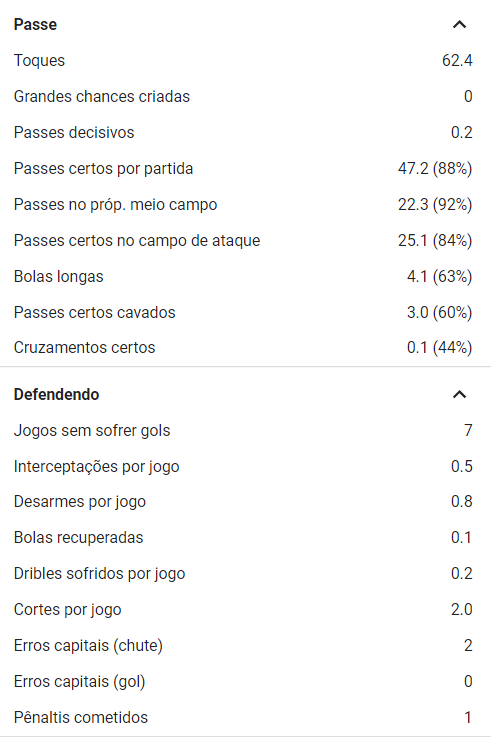 As estatísticas de passe dele saltam os olhos, como eu havia dito. Ótima taxa de acerto em bolas longas e passes cavados. Por outro lado, número alto de erros capitais (chute) - o maior da competição - é um problema grave.