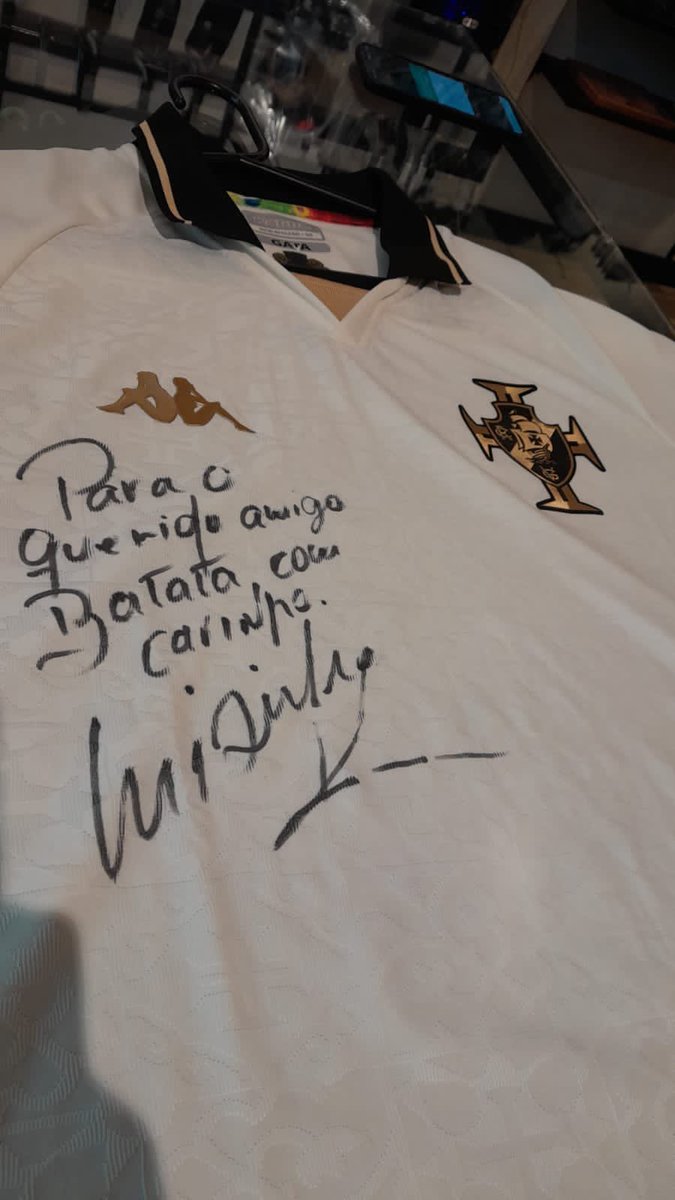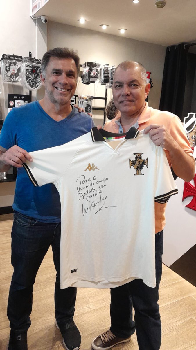 Ídolo do Vasco, Luisinho Quintanilha esteve hoje na Gigante Park Jacarepaguá. O ex-jogador foi tietado pelos vascaínos e um deles ganhou foto e autógrafo na camisa.