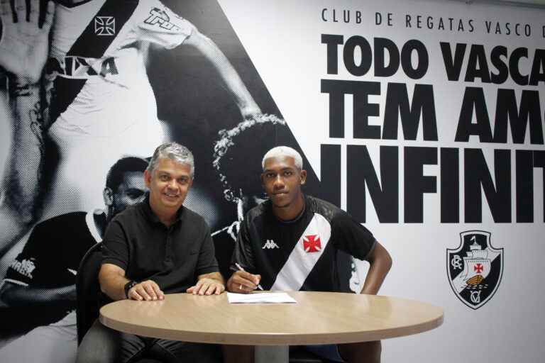A fábrica de talentos da #BaseForte não para e na tarde desta terça-feira (27), o atacante Rayan, de 16 anos, assinou seu primeiro contrato profissional com o Vasco da Gama. O vínculo firmado pelo jogador com o Gigante da Colina será válido até dezembro de 2025.