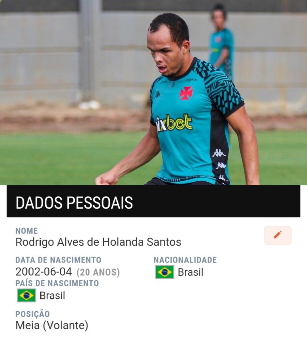 Rodrigo, meia de 20 anos, do Vasco. Uma das promessas do clube.