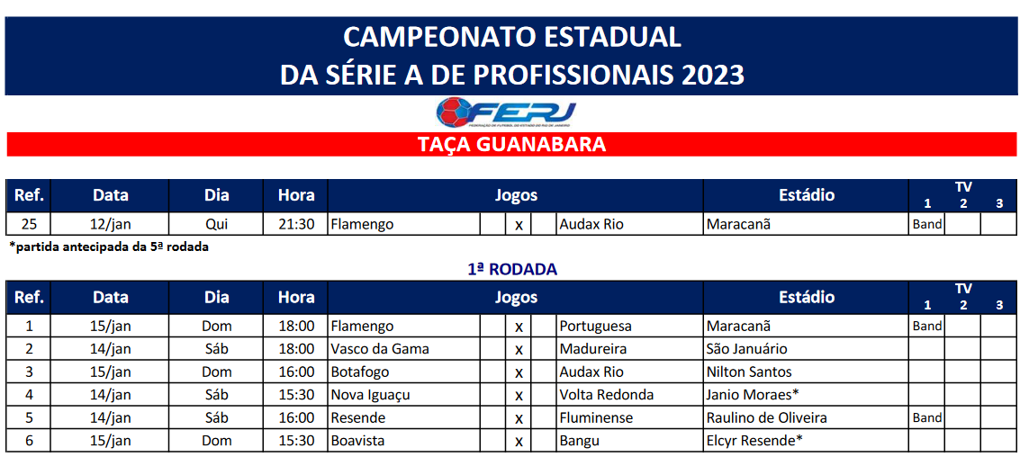 A Federação de Futebol do Estado do Rio de Janeiro informa que a tabela detalhada da Taça Guanabara já está publicada no site.