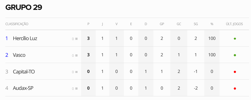 Sub-20: Vasco está em 2º lugar no Grupo 29 após a 1ª rodada da 1ª fase da Copa São Paulo; veja a classificação
