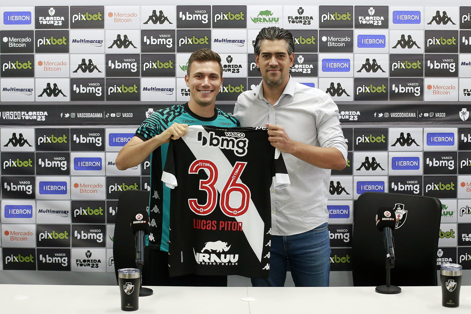 Na manhã desta sexta-feira, mais um reforço do Vasco da Gama para a temporada foi apresentado no CT Moacyr Barbosa. Trata-se do lateral-esquerdo Lucas Piton. O atleta, que foi contratado junto ao Corinthians e assinou contrato com o Gigante da Colina até dezembro de 2026, recebeu a camisa número 36 das mãos Diretor Executivo Paulo Bracks, que o apresentou aos jornalistas presentes antes da primeira coletiva de imprensa como jogador do Gigante da Colina.