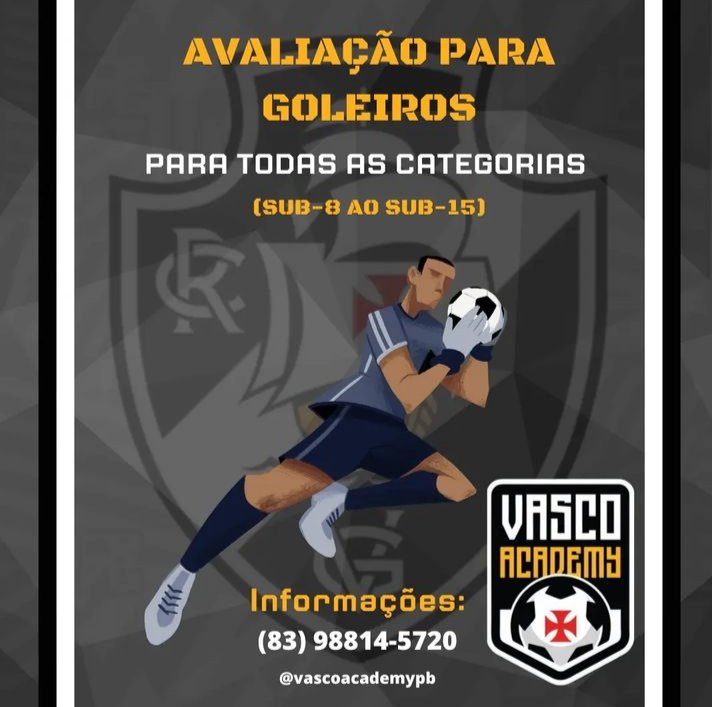 OPORTUNIDADE! A unidade do Vasco Academy de João Pessoa-PB, está recrutando goleiros de 08 a 15 anos. Caso o desempenho seja bem avaliado a bolsa pode ser de até 100%.