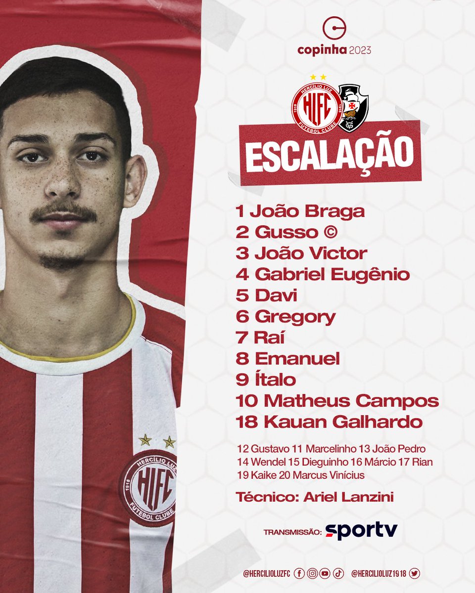 Sub-20: Confira a escalação do Hercílio Luz-SC para o jogo contra o Vasco