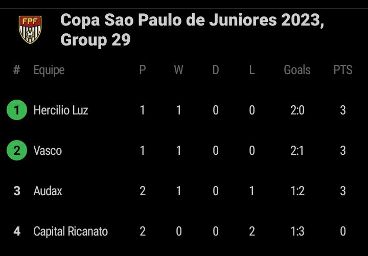 Assim ficou o grupo antes de Vasco x Hercilio Luz: