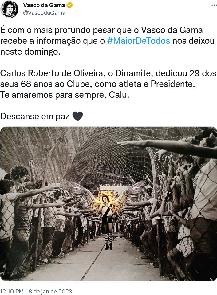 08/01/23 - Em nota, Vasco lamenta morte de Roberto Dinamite: 'NĂłs te amamos. Para sempre'