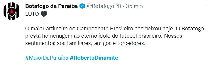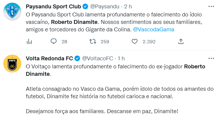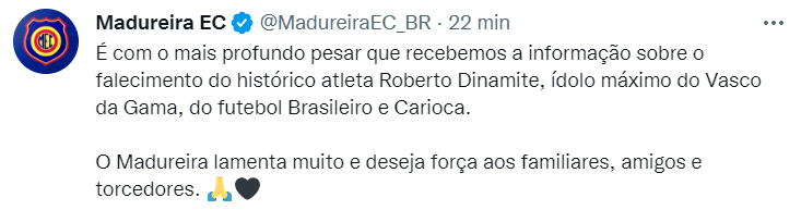 Veja mais mensagens de clubes lamentando o falecimento de Roberto Dinamite