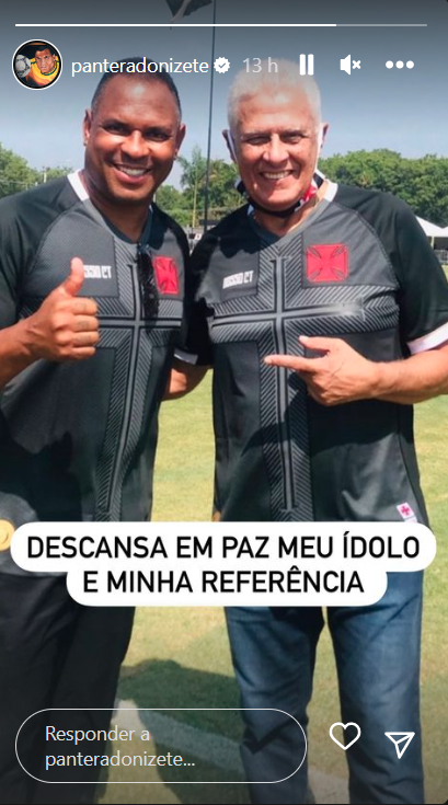 Mesmo longe, saiba que você continuará sendo tudo aquilo que um menino que chega ao Vasco deseja: uma referência eterna. Passei o dia tentando encontrar palavras para expressar essa perda. Fecho meus olhos e ainda lembro do nosso tempo de atleta. A genialidade, a potência, precisão nas finalizações, os gols, os passes, a liderança técnica, tudo. Ficava maravilhado. Não teve igual, parceiro. Deixo meu abraço apertado na família, amigos próximos e a todos os torcedores do Vasco da Gama.
