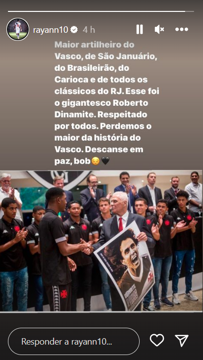 Sub-20: Rayan posta homenagem a Roberto Dinamite