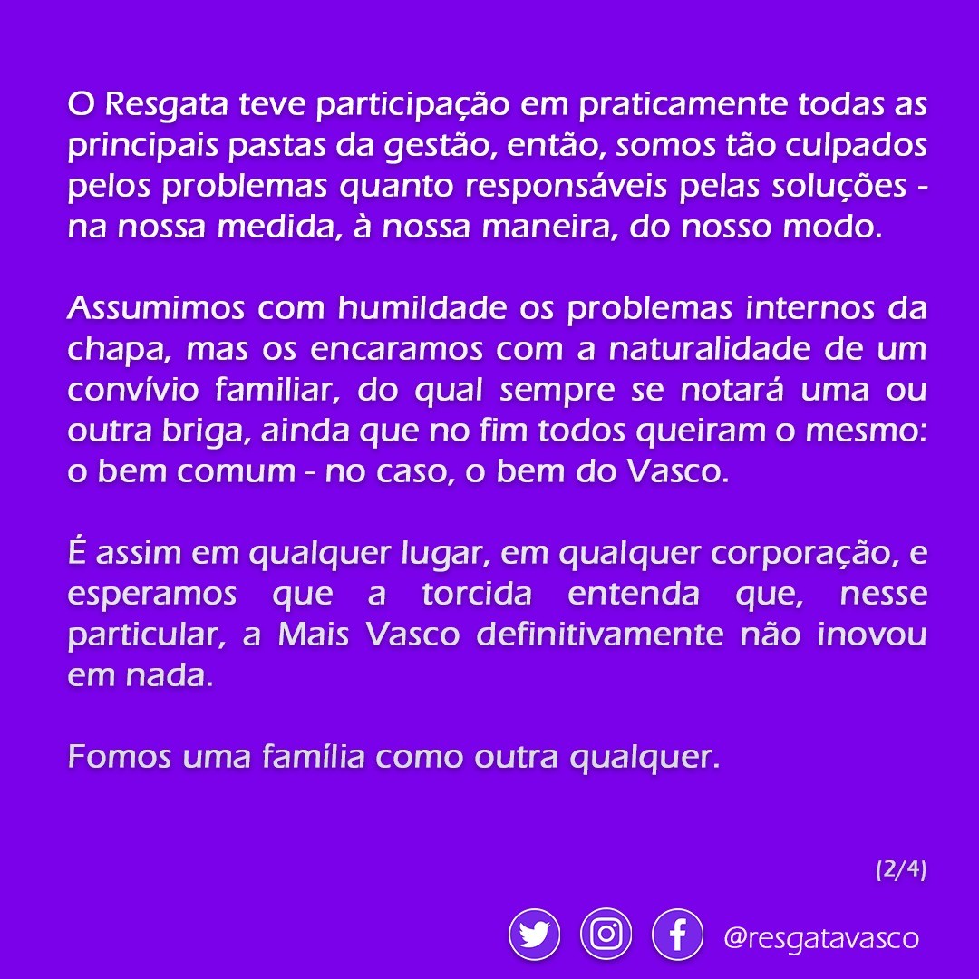 Resgata Vasco anuncia desligamento da Mais Vasco