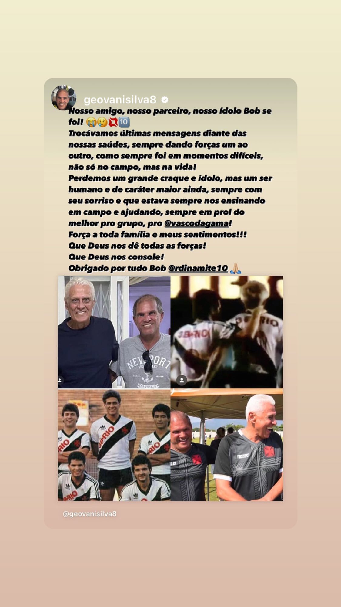 08/01/23 - Zico faz publicação em homenagem a Roberto Dinamite e lembra morte do irmão, há exatos 26 anos