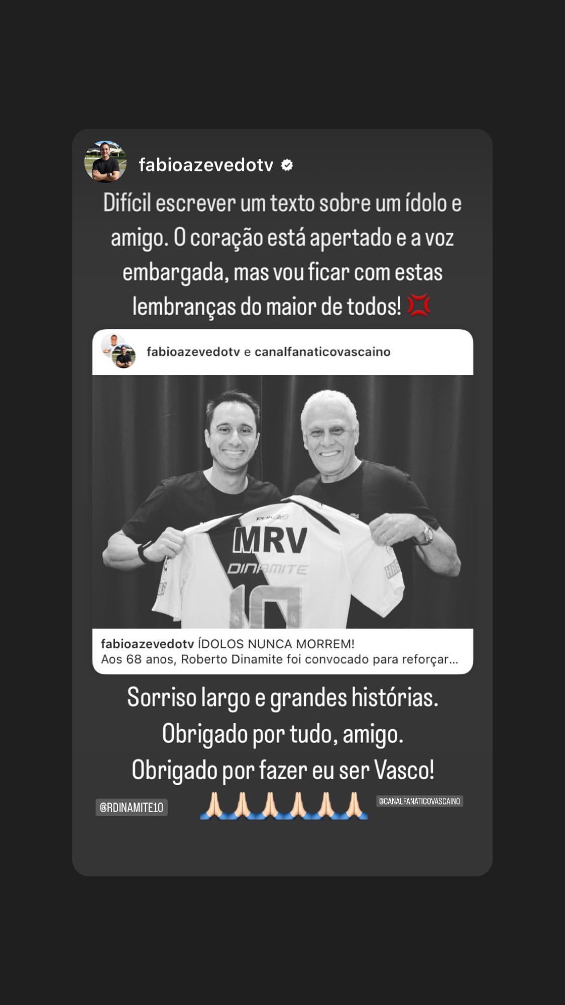 08/01/23 - Vasco publica vídeo em homenagem a Roberto Dinamite: '#DinamiteEterno'; veja