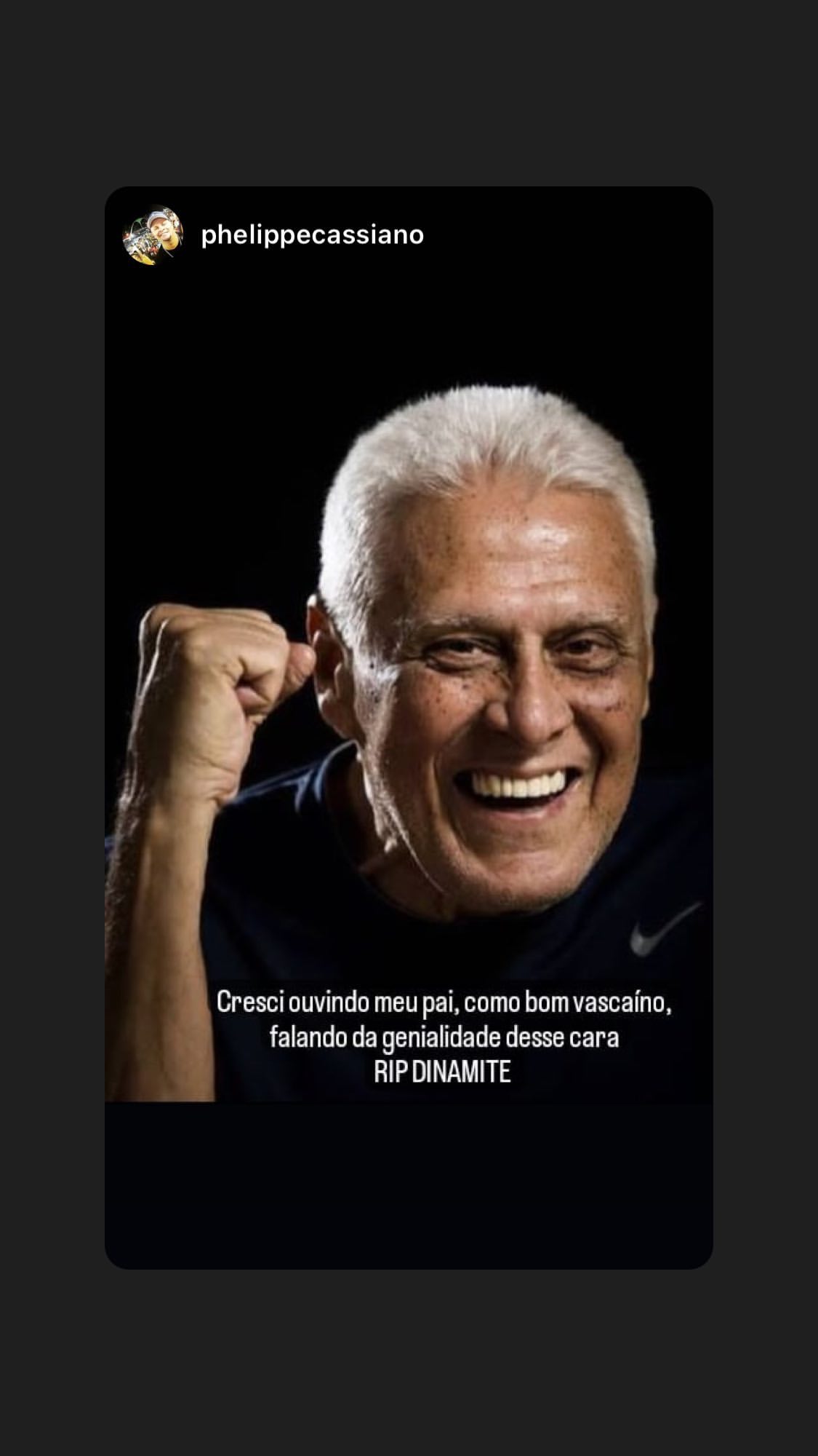 08/01/23 - Rodrigo Dinamite: 'Muito obrigado pelas mensagens. Está sendo muito difícil, uma dor imensa'
