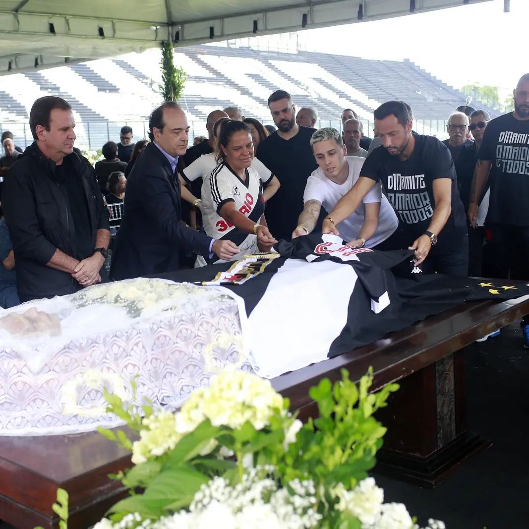 Em homenagem do departamento de futebol do Vasco, Nenê deixa camisa 10 do Vasco no caixão de Dinamite; veja fotos