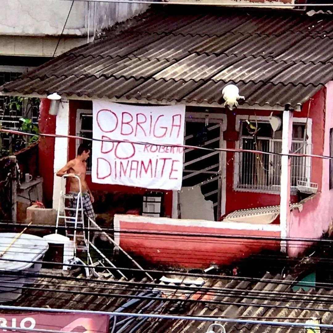 Torcedor homenageia Dinamite com cartaz em frente a sua casa