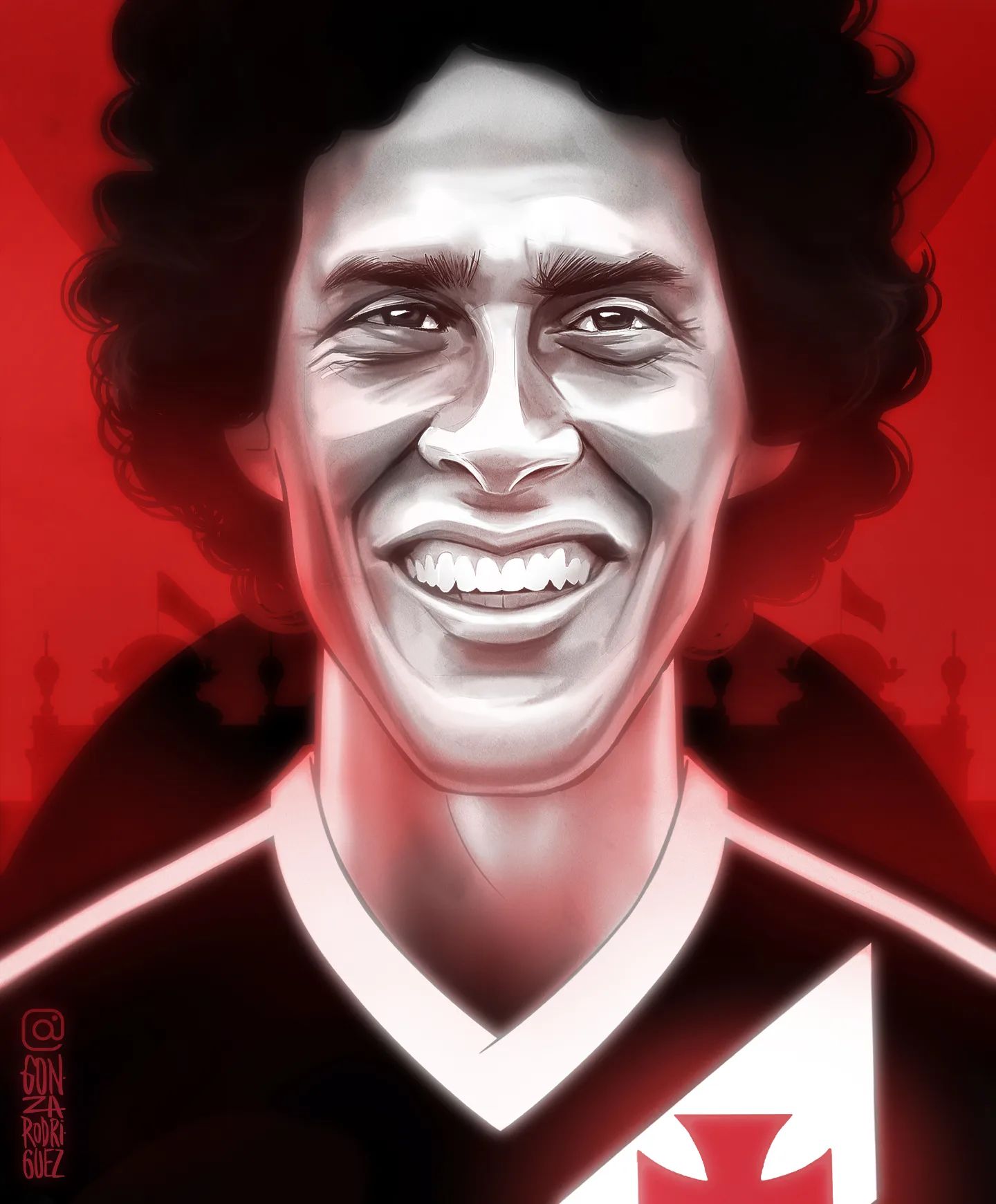 Artista Gonzalo Rodriguez posta caricatura de Roberto Dinamite