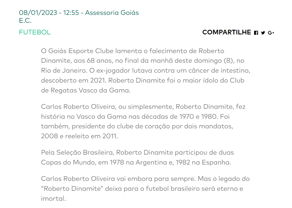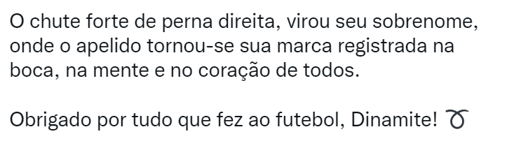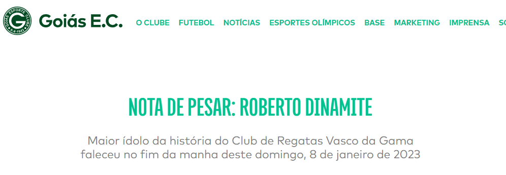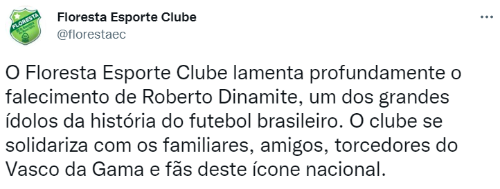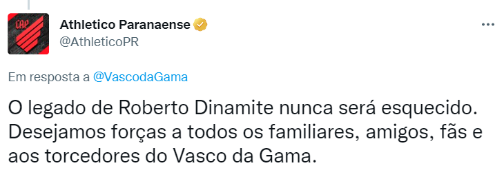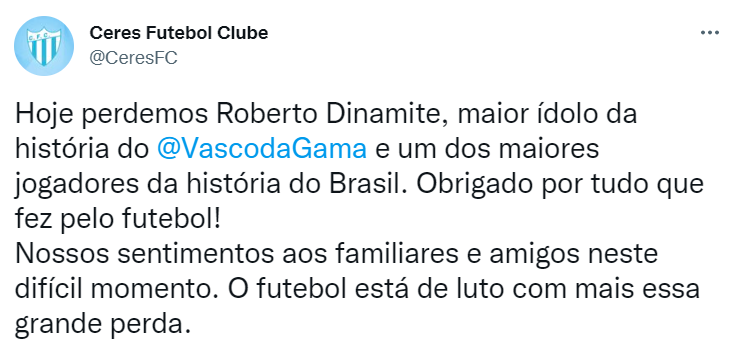 Roberto Dinamite, o maior ídolo do Vasco, faleceu no último domingo aos 68 anos. Veja mais mensagens de clubes lamentando seu falecimento.