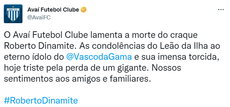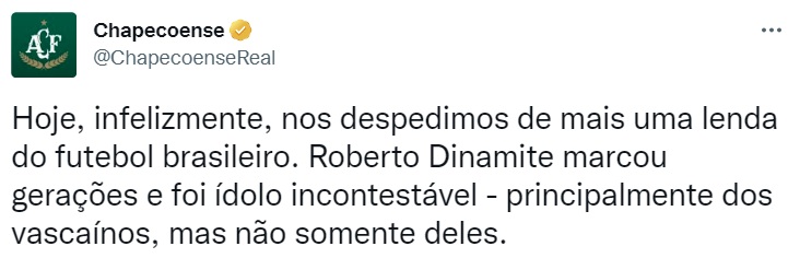 Veja mais mensagens de clubes lamentando a morte de Roberto Dinamite