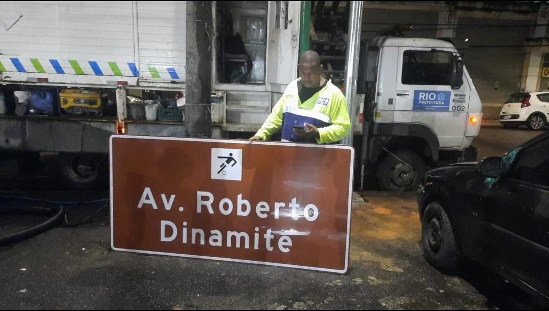 Trecho da Rua General Almério de Moura já recebe sinalização com o nome Av. Roberto Dinamite
