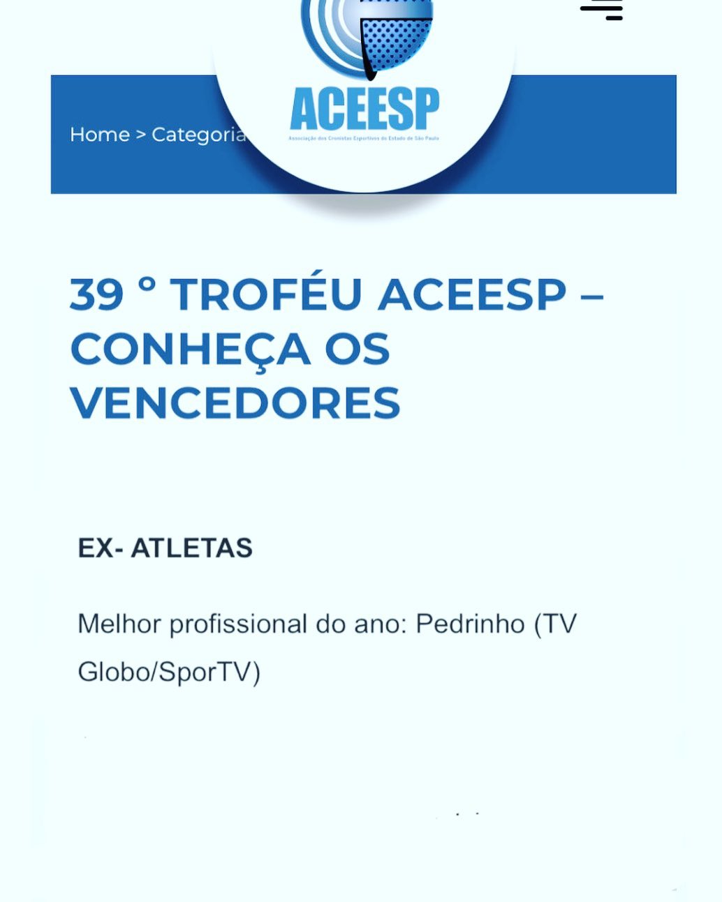 Pelo terceiro ano seguido ganho o prêmo da ACEESP na categoria melhor ex-atleta comentarista!!