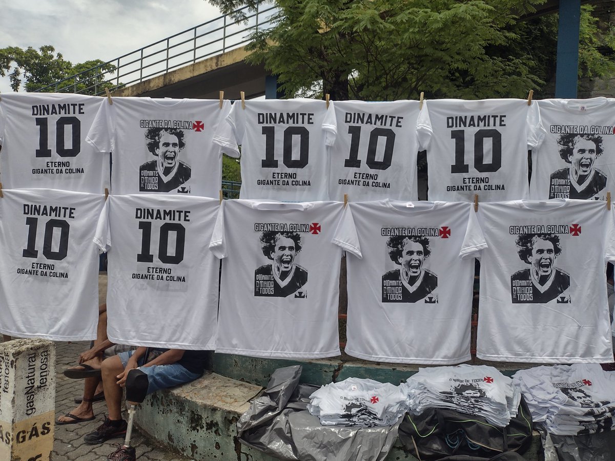 Camisa do Roberto Dinamite sendo vendida por R$ 60, mas se 'chorar', o vendedor faz por R$ 50. #lanceDINAMITE