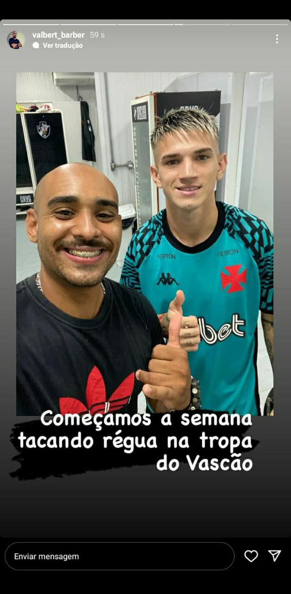 Cabeleireiro posta foto com Luca Orellano já vestido com o uniforme de treino do Vasco.