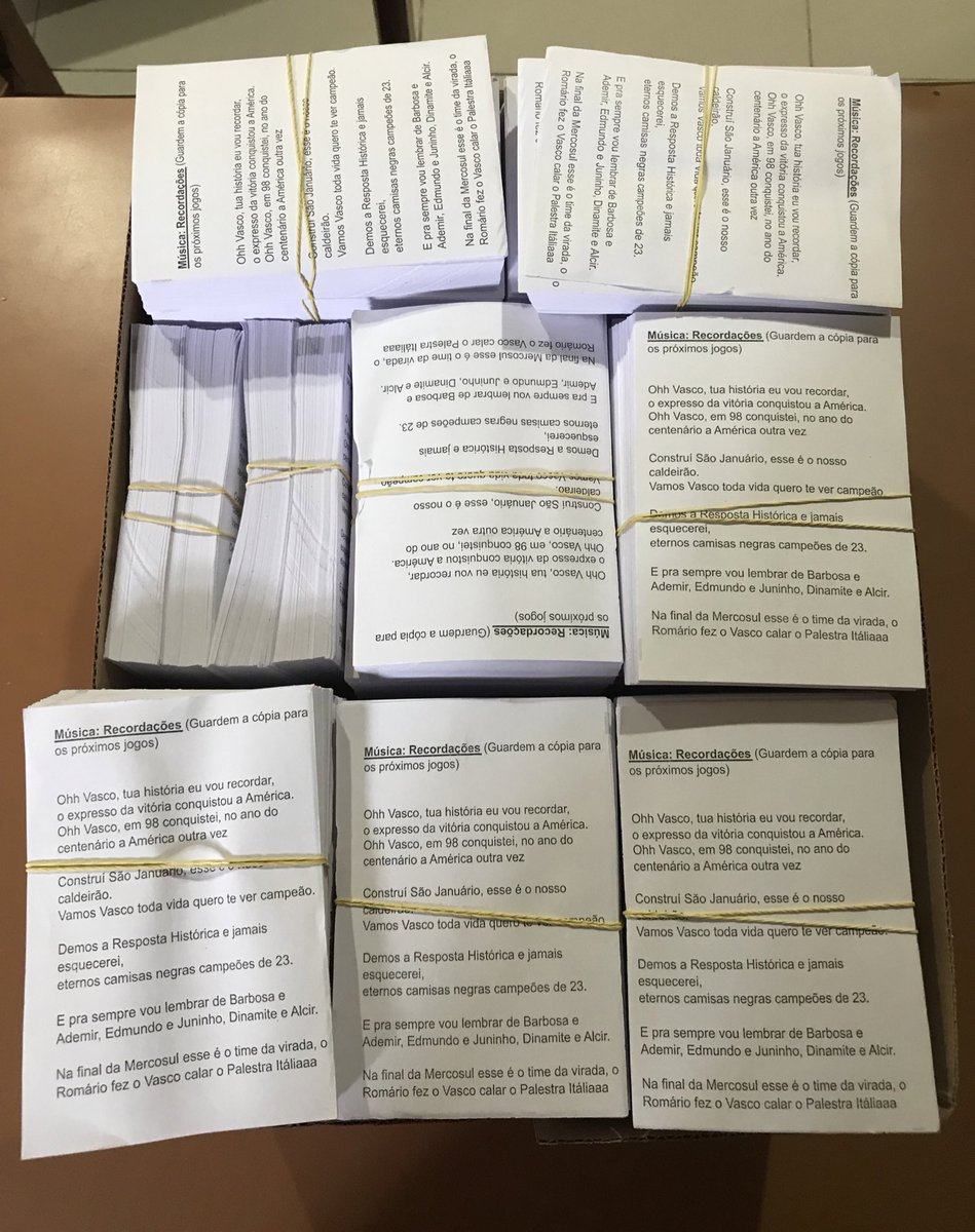 + de 16 mil panfletos da música Recordações, fora os mais de 10 mil balões brancos, bandeirão, instrumentos, união das torcidas..