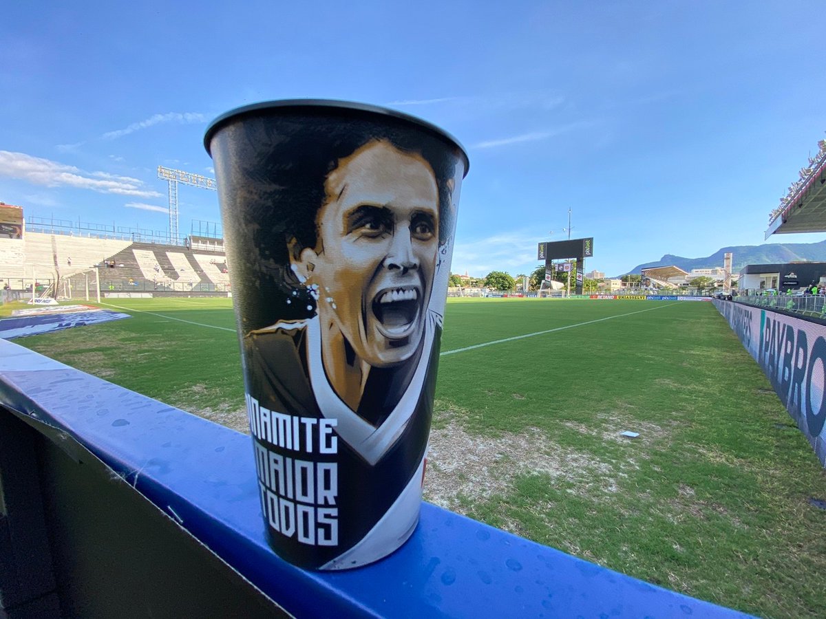 Veja o copo em homenagem a Dinamite que está sendo vendido em São Januário neste sábado
